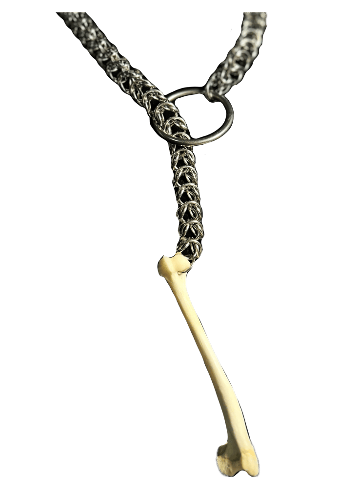 Box weave chainmaille choker with O-ring and real bone.