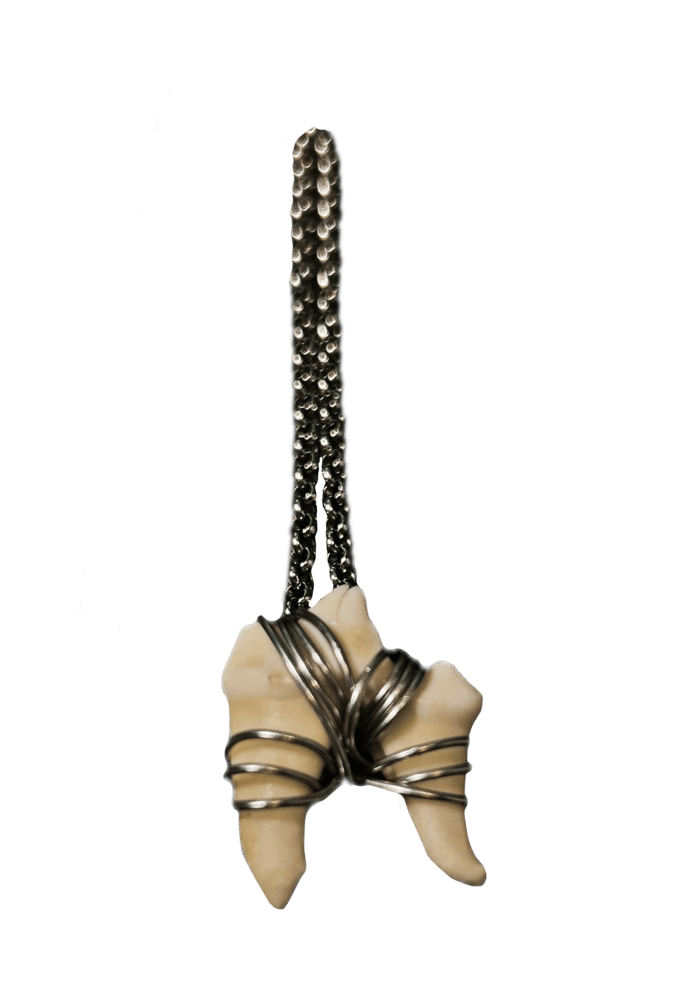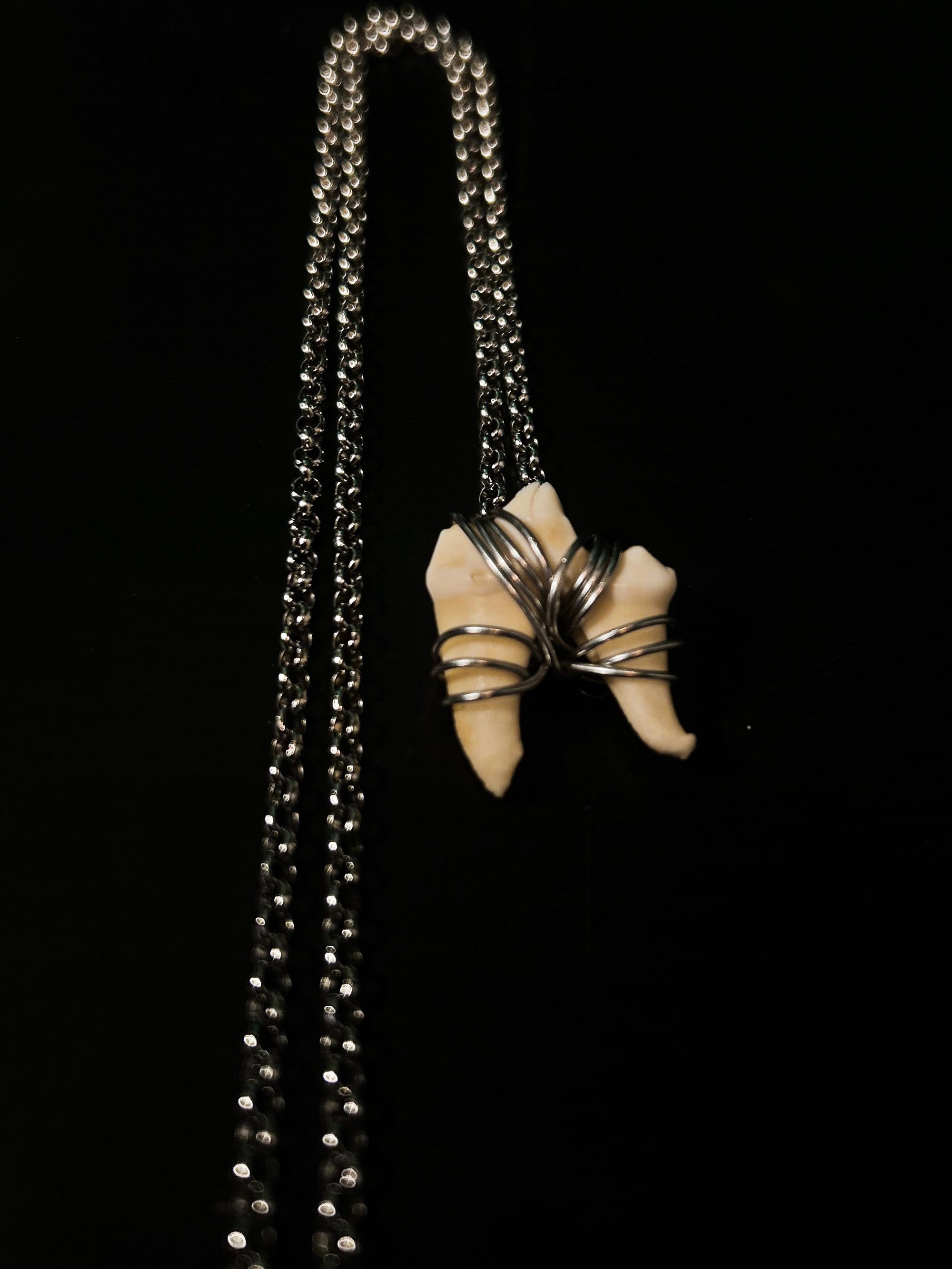 Real coyote tooth, wire wrapped. Stainless steel chain