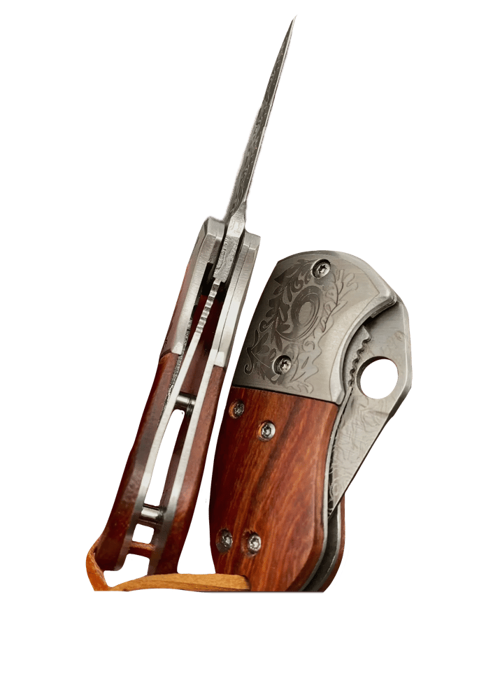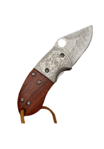 Wooden Handle Engraved Foldable Mini Knife